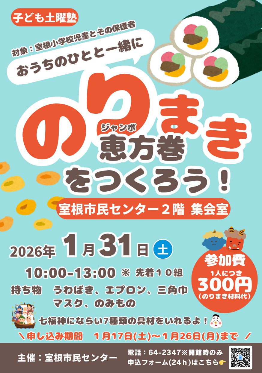 申し込みは1月17日土曜日から1月26日月曜日までで、恵方巻の材料代として1人300円の参加費がかかります。