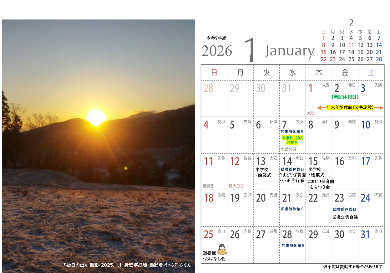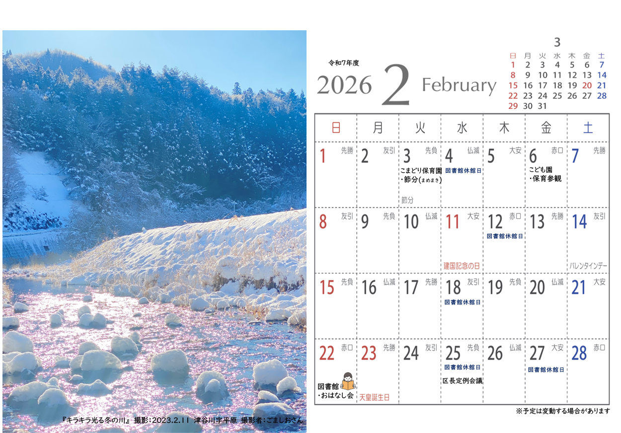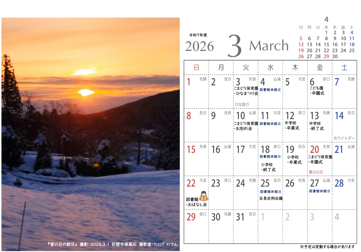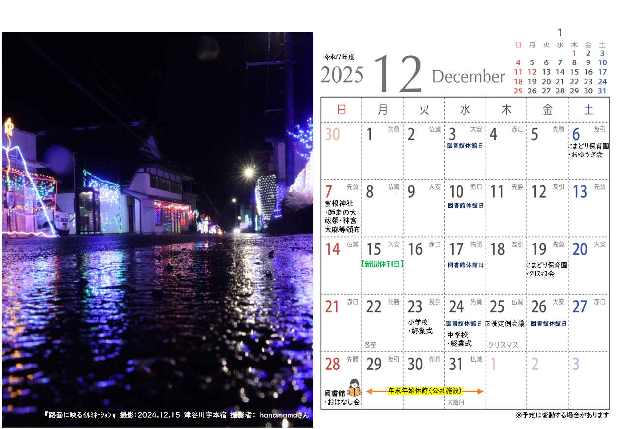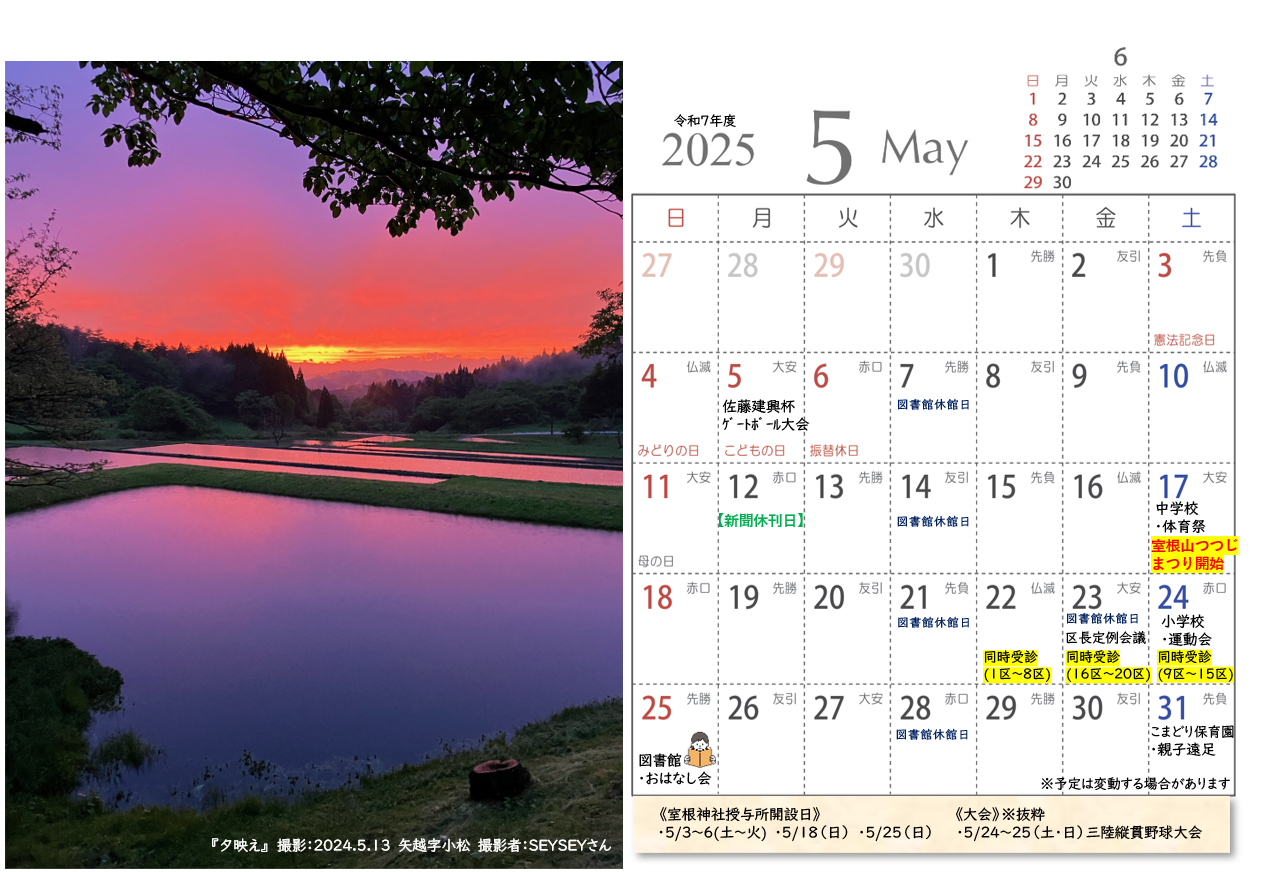 令和6年度室根まちづくり協議会広報、地元再発見&PR企画にて地域の皆様よりご応募いただき、皆さんの投票で見事グランプリに輝いた写真がカレンダーとなって登場!
