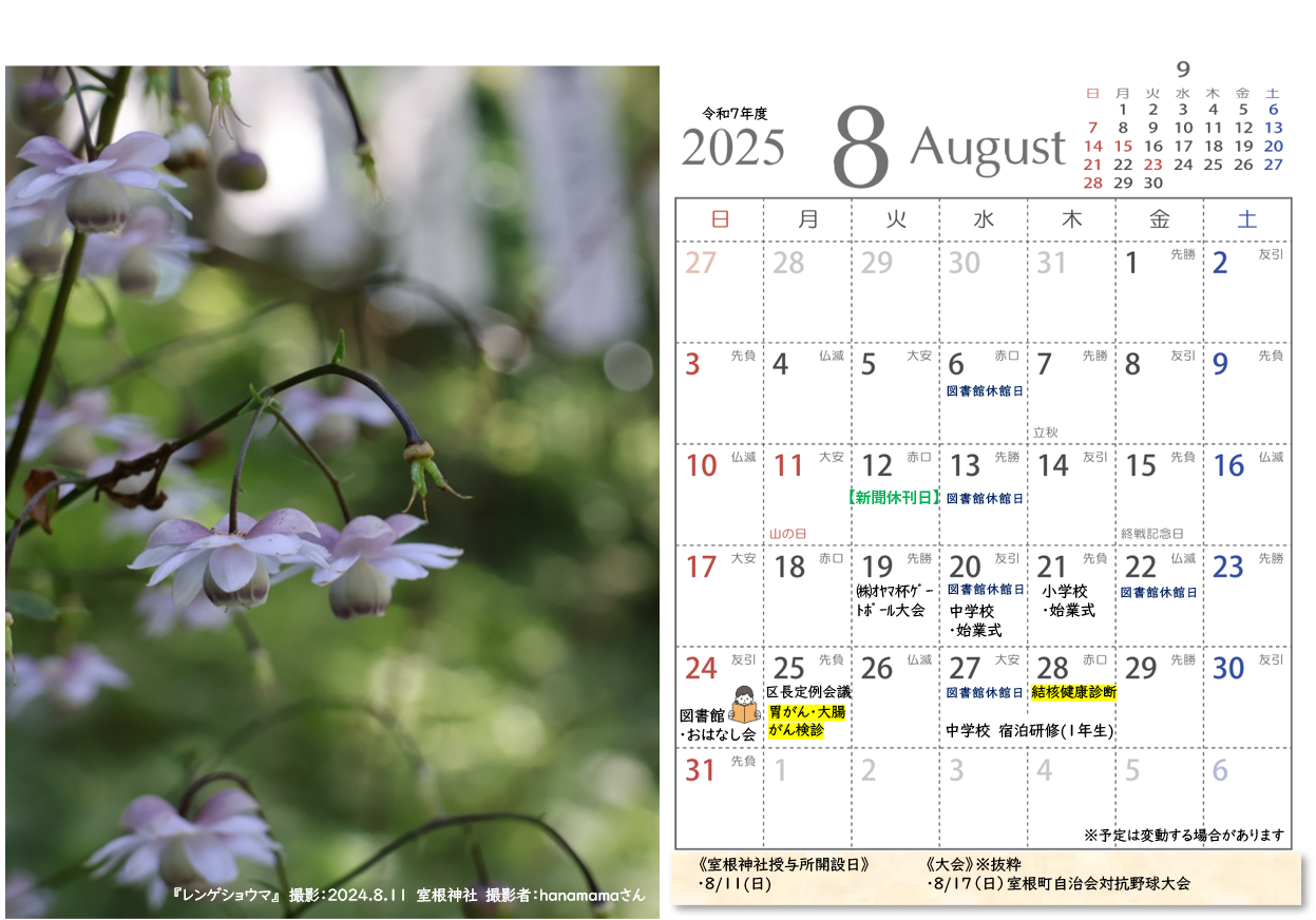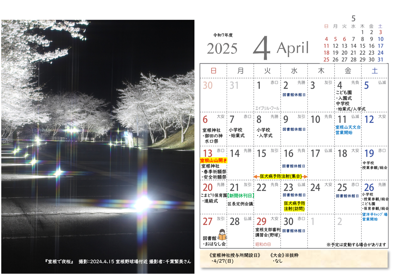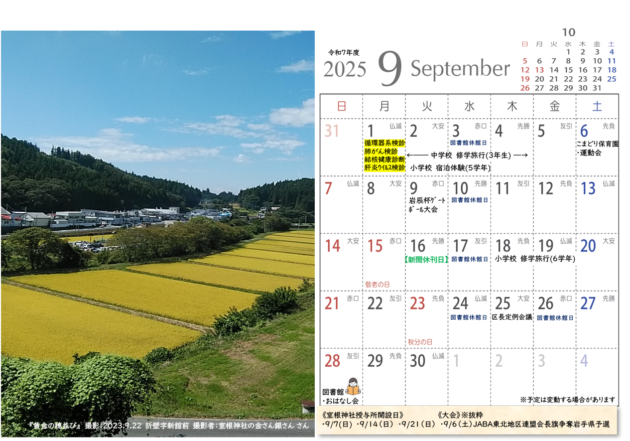 令和7年度室根カレンダー完成しました!